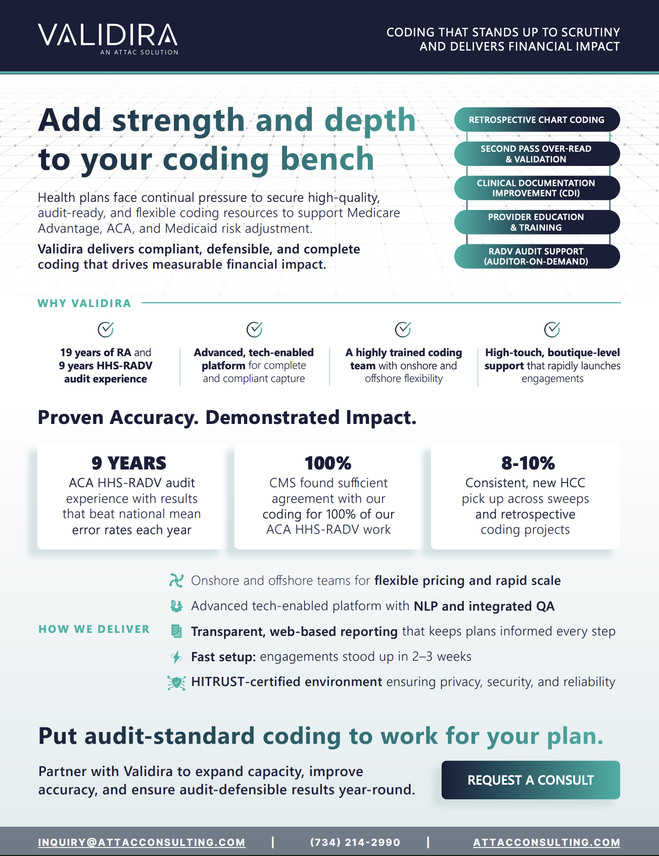ATTAC also offers clinical documentation improvement (CDI) and review services to enhance clinical coding accuracy.